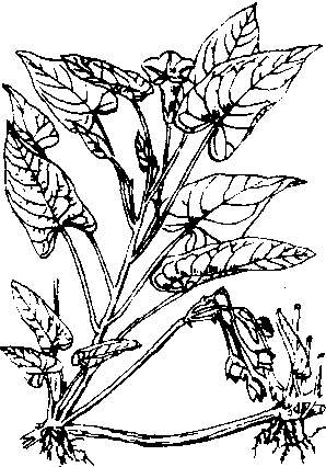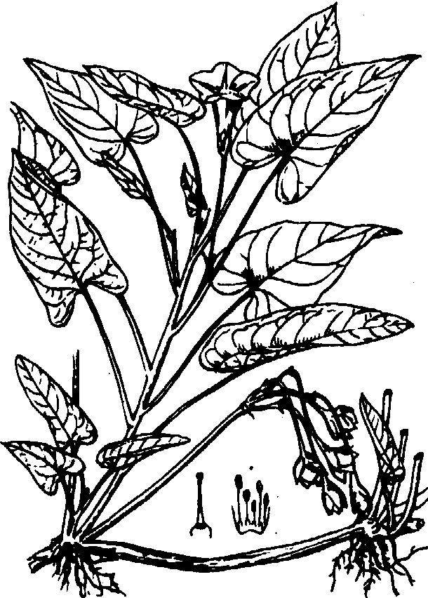蕹 菜 生长发育 蕹菜用种子或嫩茎繁殖。种子在15℃左右开始发芽,子叶开展至4~5真叶的幼苗期,适温20~25℃,10℃以下生长受阻。茎叶生长适温为25~35℃。对光照条件要求不严格。生长期间遇高温多雨或暴风雨都能生长。开花结子要求短日照和充足光照。 类型和品种 按能否结子分两个类型: 结子类型 称为子蕹。主要用种子繁殖,也可扦插繁殖。生长势旺盛。茎较粗,叶片大,叶色浅绿,夏秋开花结子,是主要栽培类型。品种有广东和广西的大骨青、白壳,湖北、湖南的白花和紫花蕹菜,四川旱蕹菜,浙江游龙空心菜等。 不结子类型 称藤蕹。扦插繁殖。旱生或水生,品种有广东细叶通菜、丝蕹,湖南藤蕹、四川大蕹菜等。 按对水的适应性又分为旱蕹和水蕹。旱蕹品种适于旱地栽培,味较浓,质地致密。产量较低。水蕹适于浅水或深水栽培(有些品种也可在旱地栽培),茎叶比较粗大,味浓,质脆嫩,产量较高。 栽培技术 子蕹于春季播种育苗,早播者需保护地育苗。浸种催芽后播种,出苗整齐,生长迅速。旱地或水田育苗均可。扦插繁殖有直接扦插法、间接扦插法或去年宿根,分枝繁殖。 栽培方法: ❶旱地栽培。 ❷浅水栽培 (或水田栽培)。用普通水稻田或地势较低排水方便的菜田种植。多行育苗移植,也可扦插繁殖。定植后 (或扦插后),保持5~8厘米水层,雨天注意排水。追肥以速效氮肥为主。 ❸深水栽培(或浮水栽培)。利用泥层厚、肥沃,水深30厘米以上的水塘、水沟或河滨栽培。4月至5月间摘取侧枝,用稻草绳、棕绳或细竹杆等夹着,两端套在竹桩(或木柱)上,使得随着水的涨落而浮生水面。所产蕹菜茎、叶脆嫩。 蕹菜的管理原则是早栽植,多施肥,勤采摘。一般在株高25~30厘米时留基部2~3节采摘。侧枝发生后留1~2节采收。如此一次栽植,多次采收。采收期4至9个月。 留种方法: 结子类型和不结子类型留种方法也不相同。❶子蕹: 选择有本品种优良性状的植株,摘取侧枝扦插于中等肥力的旱地,搭架引蔓,8月份以后陆续开花结子,陆续采收。 ❷藤蕹: 在低温地区,于芒种前后移栽,控制氮肥,培育组织充实壮健的藤蔓。11月上旬挖出晾晒2~3天,捆成把贮存在坛形窖中,保持10~15℃,空气相对湿度75%,次年春取出育苗。在冷凉地区可于10月下旬选晴天挖出根茎作种株,略加晒干,贮入地窖,贮藏时窖底铺稻草防寒越冬。 蕹菜的病害常见的是白锈病(Albugo ipomoeae-aquaticae)为真菌病。在叶上发生白色疱斑。 蕹菜swamp cabbageIpomoea aquatica Forsk.,又称空心菜、通菜、藤菜、藤藤菜、竹叶菜等。旋花科,甘薯属。一年生或多年生草本。原产中国、印度,广泛分布于热带亚洲地区,中国南方广为栽培。须根系浅,再生力强,茎扁圆或近圆,中空,黄绿、浅绿、浓绿或紫红色。节上易生不定根,适于扦插繁殖。子叶对生,马蹄形,真叶互生长卵形,基部叶心脏形或披针形,全缘叶面光滑,叶柄较长。聚散花序,花腋生,花冠漏斗状,完全花,白或浅紫色。蒴果卵形,种子近圆形,皮厚,黑褐色,千粒重32~38 g。2n=2x=20。喜高温多湿,日照充足,不耐寒,遇霜茎叶枯死。蕹菜依能否结籽分两类:
