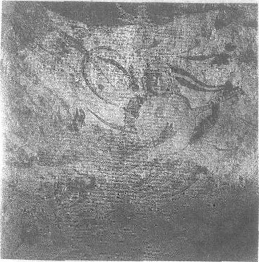 | 释义 | 薄肉塑弹阮飞天像北周。高68厘米,宽135厘米。甘肃省天水市麦积山石窟第4窟第3龛前廊正壁塑像。此为四身使乐天人之一(习称飞天),取自正面形象,面部和手使用细泥雕塑,其余均为彩绘而成。其面庞丰满圆润,五官紧凑端正。双臂裸露,佩宝钏,阮琴被紧抱胸前,纤巧的双手在自如灵活地弄弦。形象妩媚生动,有脱壁欲出之感。这种绘塑结合的艺术形式新颖而独特,集绘画的潇洒和雕塑的立体化于一身,是石窟艺术中的创举,在国内较为罕见。