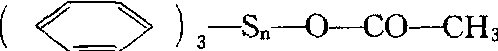 | 释义 | 薯瘟锡fentin acetate有机锡杀菌剂。化学名称:三苯基醋酸锡。化学结构式如下。原药白色无味结晶,20℃时水中溶解度28mg/kg,微溶于大多数有机溶剂。遇空气和阳光易分解形成不溶性锡化合物,干燥下贮存稳定。保护性杀菌剂,叶面喷洒可防治多种作物叶斑病,如甜菜褐斑病,还可提高含糖量,亦用于稻田防除藻类及蜗牛,对一些昆虫有忌避和拒食作用。对植物药害小。大鼠急性口服LD50125 mg/kg,经皮500 mg/kg,慢性毒性试验未发现病变,对蜜蜂无害。
