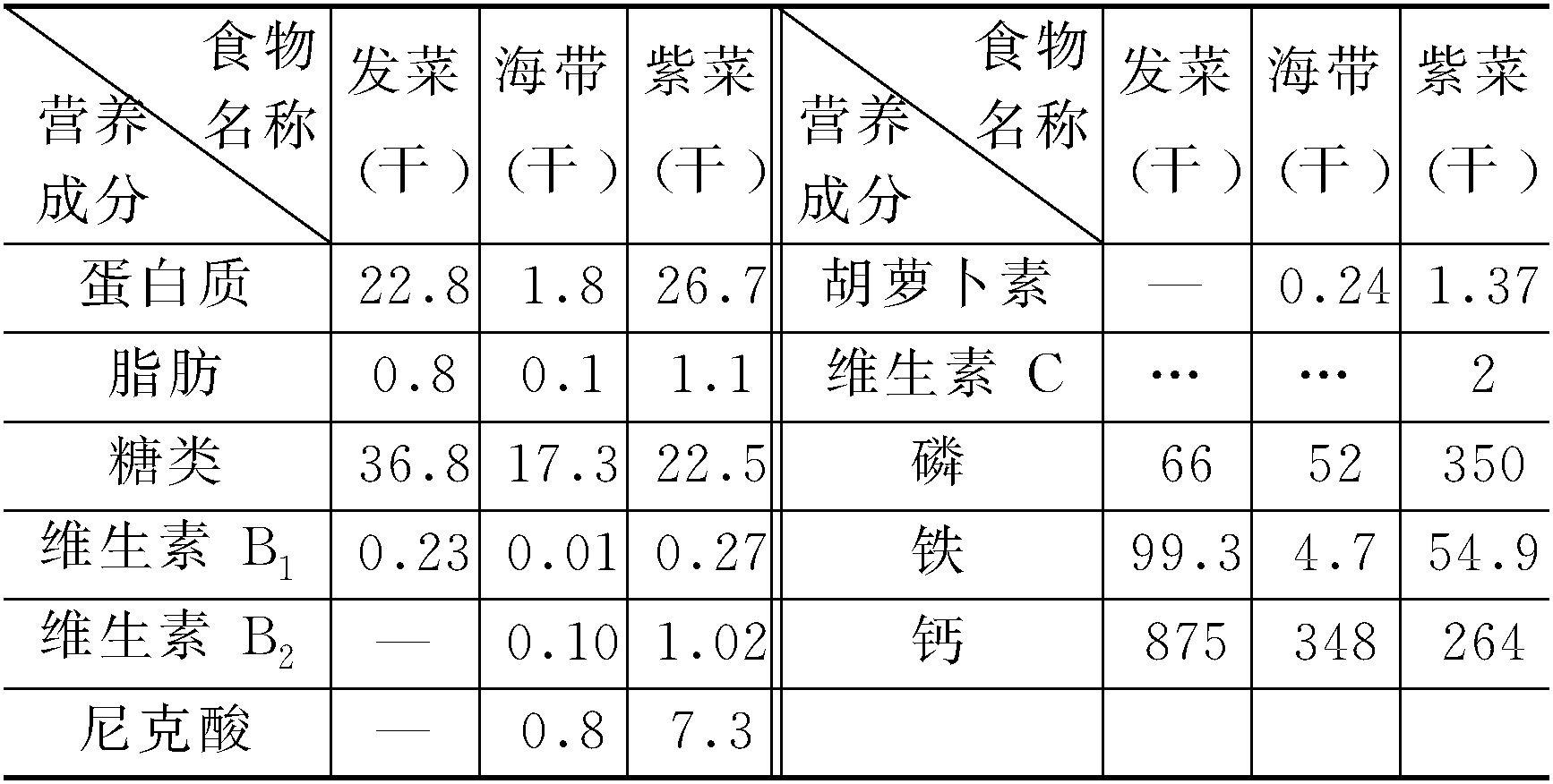 | 词条 | 藻类营养素含量 |