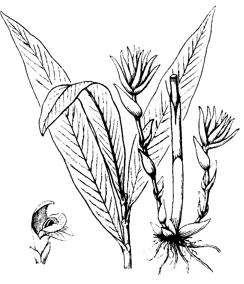 同属植物80种,供观赏的有红球姜(Z. zenum-ber),多年生草本,高约2m,具块状根茎,叶2列,叶鞘抱茎。穗状花序,近长圆形,苞片呈覆瓦状排列,小花白色,花期夏、秋季。喜温热气候,宜半阴,需肥沃土壤。冬季地上部分枯死,进入休眠。分株繁殖。红球姜花序独特,可作花境材料。 蘘荷mioga gingerZingibermioga Rosc.,又称蘘草、野姜、茗荷等。姜科,姜属。多年生草本植物。6n=72。原产中国。中国南部仍有少量栽培。茎及叶形似姜。春暖后从地下茎抽出紫红色嫩芽,俗称蘘荷笋。初夏抽出花轴。喜高温湿润。以嫩茎、花轴或地下茎供食用,有芳香,地下茎味似姜。煮后拌食或炒食,也可腌制。根可入药。