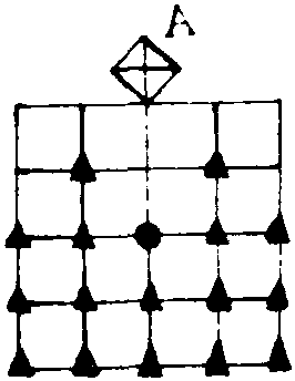 虎棋很象激烈的围猎场面。棋格如图:布子如图所示,中心“·”子象征虎,周围16个“Δ”子象征猎人。“猎人”必须将“虎”围逼到A点才能获胜。弈时“·”子先走,“·”子在直线上隔一子一跳,或向前走一步。“·”可以象“挑担”一样吃掉对方两子,直至将“△”子吃完为胜。