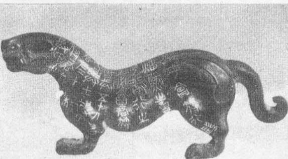 秦杜虎符1973年陕西西安出土 虎符信物,凭证。发兵动武则用虎符。统兵官与中书或枢密院各半,发兵时以使者持皇帝诏书及虎符对验合符后方举兵动武。历代皆相沿用,因初符面画虎头故名。其质初为竹,汉以后皆以铜。有虎头形,亦有“虎” 字者。虎者,取其威猛之意。《资治通鉴·汉纪》:“王欲发兵,非有汉虎符验也。”应劭曰: “铜虎符第1至第5,国家当发兵,遣使者至郡合符,符合乃听受之。” 虎符古代帝王授予臣属兵权和调发军队的信物。用铜铸成虎形,背有铭文,分为两半,右半留存中央,左半发给地方官吏成统兵的将帅。调发军队时,须由使臣持符验合,方能生效。盛行于战国、秦、汉。传世有新郪虎符等。 |