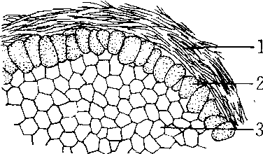 虚球黑粉菌属 1.外鞘 2.冬孢子 3.中柱 |