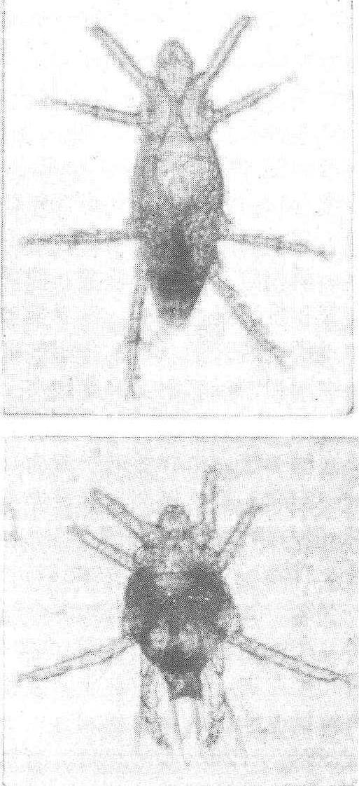 诊断与防治 虱螨体躯小,一般肉眼不易看见,用30倍放大镜可查见有纺锤形小虫体在蚕体上爬行或叮食。将有虱螨病症状的蚕、蛹、蛾在黑色纸上或玻片上轻轻抖动,或将病蚕扯伸体皮,如有淡黄色针尖大小螨点爬动,用小滴清水固定,用放大镜或100倍显微镜观察,看到虱状恙螨,即可确诊为本病。虱螨往往会爬到养蚕者身上叮食,常感皮肤发痒,出现红斑,以致红肿发热。根据这些人体反应,可作为进一步调查虱螨病的旁证。根据虱状恙螨的生活习性和为害规律。采取下列防治方法: ❶消灭虱状恙螨的主要越冬寄主棉红铃虫和麦蛾幼虫。 ❷蚕室蚕具不堆放晾晒棉花、杂粮种籽秸杆等,蚕具未经消毒不进蚕室使用。 ❸严格蚕室蚕具消毒和杀虱处理。蚕室消毒采取扫、刮(刮缝隙虫)、擦(机械杀死虫)、洗、涂(涂泥挤压杀死虫)、消(常规消毒用药)、熏(每间屋用硫磺2千克或每立方米杀虱灵3克等方法进行消毒杀虱。蚕具洗净后采用蒸汽消毒灶消毒、兼杀虱螨。 ❹应用杀虱灵、肥皂液防病1号等驱、杀蚕体、蚕座的虱螨。 ❺发病后进行室外地蚕育或更换蚕室均能减轻为害。 |