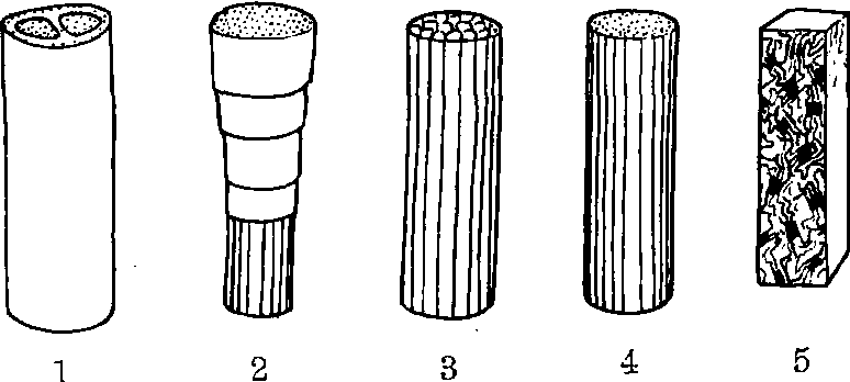 茧丝断面形态 茧外层茧丝较圆整,越到内层越扁平。长短径的比依计算方法称扁平度或充实度。外层茧丝充实度高,内层充实度低。一般计算,即依长短径比以表示圆整与扁平的程度。 影响生丝断面形态的因素有以下5项: ❶茧丝在茧层中的位置: 外层茧丝较圆整,缫成生丝也容易圆整; 内层茧丝较扁平,缫成生丝也容易扁平歪斜,缺乏圆整。 ❷缫茧粒数的多少: 一般粒数增加,生丝的圆整程度也随而增加,粒数少时圆整度欠佳。 ❸丝鞘长度的长短: 一般20~30毫米时,丝的紧密程度虽较差,但生丝断面的充实度高。80~100毫米时,紧密度较高,充实度较次。所以无鞘或过长,都对生丝的断面形态不利。 ❹缫丝速度的快慢: 卷速提高,生丝张力增大,生丝断面的紧密度增加,充实度也增高。 ❺磁眼孔过大或畸形: 缫丝时丝条必须通过磁眼孔,如孔径过大或畸形,都会使丝条畸形或不圆整。 蚕丝又称“天然丝”。蚕结茧时吐出的丝缕。主要成分是丝朊和丝胶。按蚕的食料不同,主要成分为桑蚕丝(又称家蚕丝)、柞蚕丝和蓖麻蚕丝等。前者比中者丝胶含量高、纤度细,后者品质不如前两种,不能缫丝,常用于绢纺。 蚕丝natural silk桑蚕丝的简称,又称天然丝。熟蚕结茧时由吐丝管分泌的液状丝物质凝固而成的长纤维。是人类最早利用的动物纤维之一。由单个蚕茧抽得的丝纤维称为茧丝,它由两根单丝纤维经丝胶黏而成。每根单丝的中心为丝素,外围为丝胶。丝素纤维的截面形状近似三角形。丝胶由3~4层溶解性不同的丝胶层组成。每根单丝的丝素纤维可分出50~100根直径约为1 μm的细纤维。细纤维是微纤维(直径约为10 nm)的集合体,微纤维由微丝元、基本丝素元等更小的蛋白质大分子所构成。茧丝断面形态,在茧的外层较圆整,越到内层越趋向扁平。一般用长短径比值表示圆整与扁平的程度。 蚕丝指桑蚕丝,熟蚕结茧时吐出的丝纤维。蚕丝由2根单丝并列胶合而成。丝胶由3~4层丝胶层组成,占单丝重量的20%~30%。单丝的中轴是丝素,重量占单丝的70%~80%,每根单丝的丝素可分出直径约1 μm的细纤维50~100根。 |