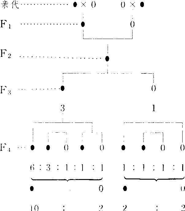图中是正反杂交,但在褐♀×黑♂,F1成褐,黑♀×褐♂F1成黑,如以F1性状受母亲基因型支配而不受其表现型支配, 即易理解,同样理论,亦适用于F2蚕不能自体受精,故F2卵外表同样呈黑色卵,孵化的个体间随机交配,则如次表: