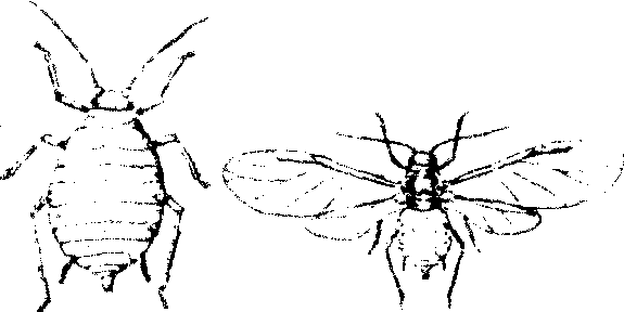 图200 蚜虫 蚜虫Aphididae无脊椎动物,昆虫纲,同翅目,蚜科昆虫的通称。俗称“腻虫”或“蜜虫”。体小,长1~2毫米。成虫可分为有翅蚜虫、无翅蚜虫两种类型。口器为刺吸式,刺入植物叶片、嫩茎组织吸食汁液,一般均能分泌“蜜露”,常吸引蚂蚁尾随其后。繁殖力极强,条件适宜时,主要以孤雌胎生繁殖若蚜,若蚜多为无翅雌蚜,秋天,可产有翅雌蚜虫和雄蚜虫,它们迁飞到越冬寄主植物(花椒树、石榴树)上交配、产卵,1年可繁殖10~20代。危害粮食、棉花、蔬菜、瓜果、烟草、大多数花卉等植物。种类很多,全世界约有4000多种,我国约有600多种,我国各地多有分布。如麦蚜、高粱蚜、棉蚜、菜蚜、桃蚜等。 蚜虫aphid昆虫纲、同翅目、蚜总科和球蚜总科昆虫的统称。体小,柔软;触角3~6节;前翅大,有3、4斜脉,后翅窄小,静止时放置体背呈屋脊状,少数平放于体背上;跗节2节,有2爪;腹部侧后方有腹管1对或缺,末端具尾片。世代历期短,繁殖能力强。生活周期有不全周期型和全周期型两类,前者全年营孤雌生殖,不发生有性世代,以无翅成蚜或若蚜越冬;后者一年中有孤雌生殖与两性生殖的世代交替现象,以受精卵越冬。成虫有无翅和有翅等多型现象,在环境条件不适时,即产生大量有翅蚜迁飞扩散。有趋黄色习性。大都在叶部刺吸汁液,但也有少数种类为害茎和根部。受害后出现斑点、缩叶、卷叶、虫瘿、肿瘤等被害状,并能传播百种以上植物病毒病及其他病害。全世界已知4 000多种,是为害农林经济植物常见的害虫。重要的农业害虫有麦二叉蚜、麦长管蚜、禾谷缢管蚜、高粱蚜、大豆蚜、桃蚜等。少数种类为益虫,如角棓蚜寄生在盐肤木上形成的虫瘿(五倍子),含有丰富的鞣酸(单宁),是制革、染料等工业的重要原料。 |