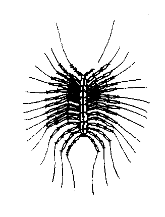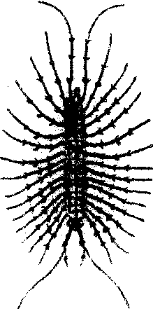 图 164 花蚰蜒 蚰蜒Youyan节肢动物门唇足纲的种类,俗称钱串子或毛蜈蚣,足极细长,可自切避敌,爬行极快,捕食性,常出没于居室内觅食。