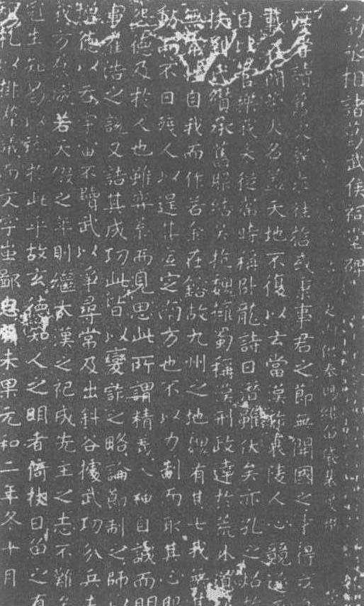 | 释义 | 蜀丞相诸葛武侯祠堂碑唐宪宗元和四年(公元809年)立高约360厘米,宽130厘米,厚23厘米。在四川省成都市南郊武侯祠内。唐中期著名宰相裴度于元和二年(公元807年)任川西节度史武元衡幕僚时撰,书法家柳公权之兄,成都少尹柳公绰书,鲁建刻。楷书体。碑文赞扬了诸葛亮的历史活动和进取精神,寓意深远,词语精妙。其书法端庄浑厚镌刻劲拔有力,被后人誉为“三绝碑”(文章、书法、镌刻)。碑的背面中下部,有剑南川西节度史武元衡、裴度、柳公绰以及同游者20余人的题名;正背两面和碑侧,遍布唐、宋、明、清等人物的题名、题诗和跋识,具有重要的文献价值。柳公绰(763—803年),京兆华原人,字宽,唐代著名书法家柳公权之兄。官至兵部尚书。工书,传世书迹有《武侯祠记》、《紫阳先生碑》。