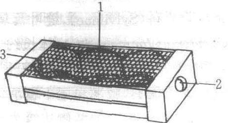 蜂王邮送笼 1.三个连通小室 2. 蜂王入口 3.铁纱网 |