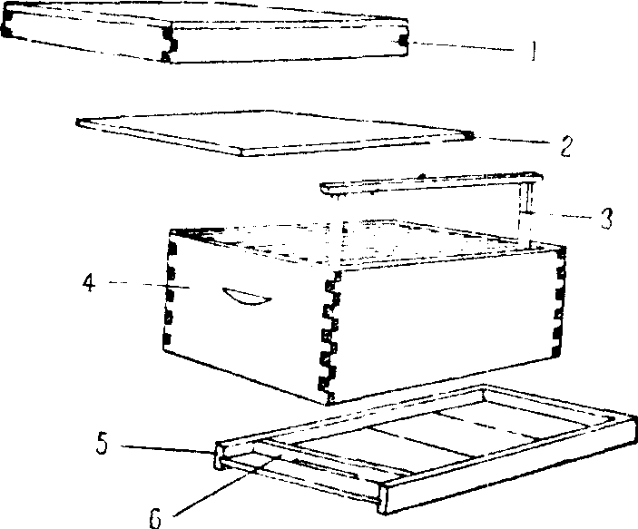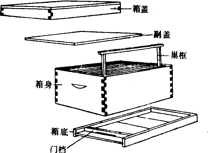 蜂箱hive供蜂群生活、繁殖的处所,是饲养、管理蜂群和生产蜂产品的主要设备。
