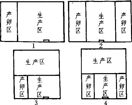 蜂群分区管理示意图 1.单王单箱分区 2. 双王单箱分区 3. 单王加继箱分区 4. 双王加继箱分区 |
