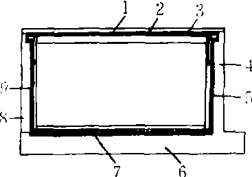 1.副盖; 2.上蜂路; 3.巢框;4.前壁; 5.前蜂路;6.箱底; 7.下蜂路; 8.后壁; 9.后蜂路