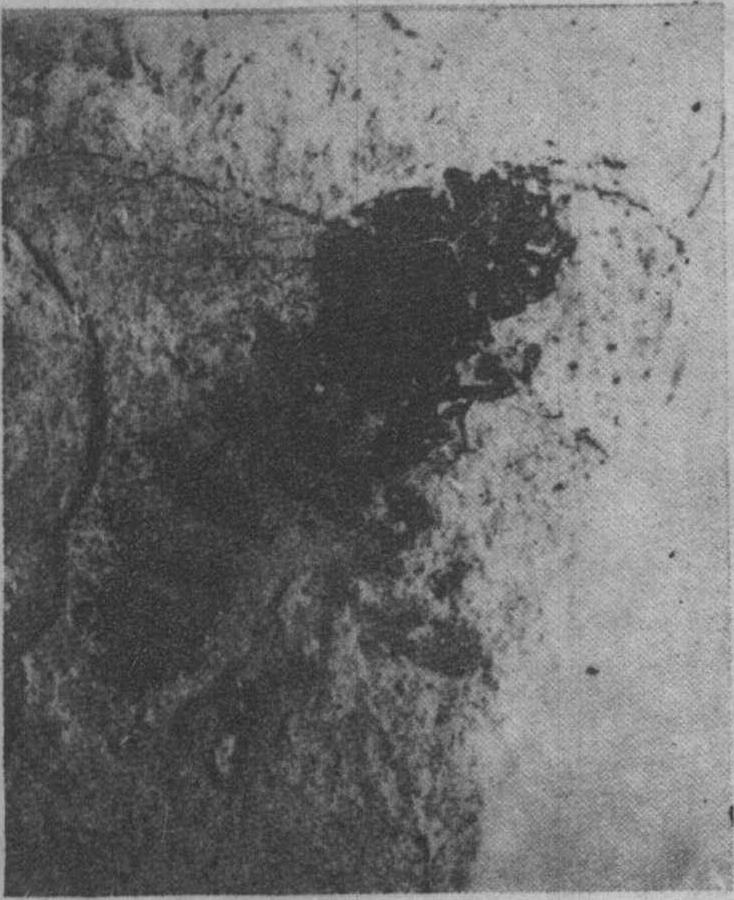 图1 北泊子古蜜蜂 翅脉保存清楚,与近代生存的蜜蜂类脉序基本相同。翅基窄长,端缘斜切;前缘斜直,末端向下弯曲;前缘脉、径脉较其他脉为粗浓,径脉基部向前向下斜伸,中脉多次弯曲,最后向斜伸出,末端未达翅缘消失;中脉在翅基与肘臀脉合并,斜直,以后两脉分离;肘臀脉与中脉分离后,曲折下斜,并分为肘臀脉1和肘臀脉2,前者末端钩形,未达翅缘;后者突然向前交于臀脉;肘臀脉斜伸达翅缘。一支径脉形成两个径室,后者多于前者两倍;三支径中横脉,形成三个径中室。 世界各地发现的古蜜蜂化石