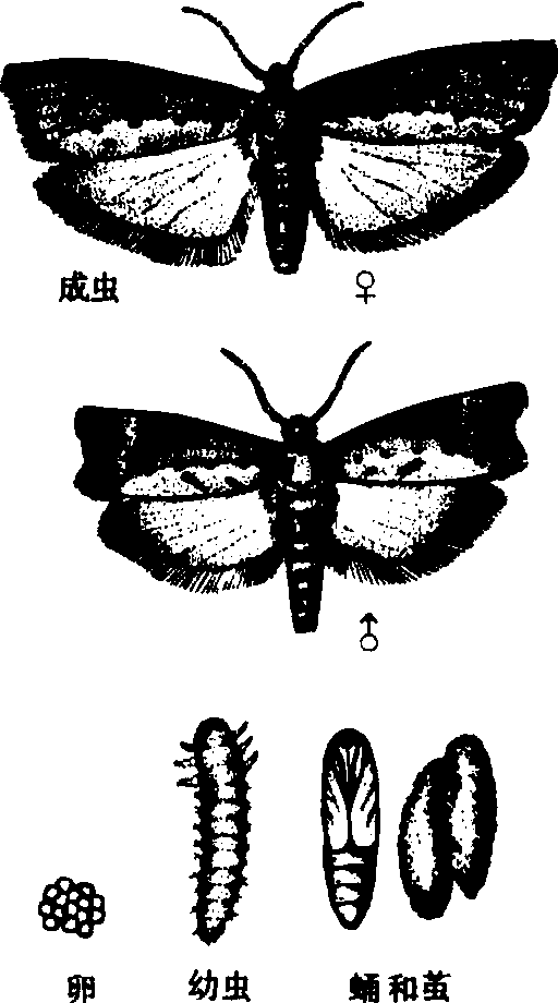 图2 小蜡螟的各期虫态 小蜡螟在一年通常可繁殖3代。在月平均气温为20~25℃的条件下,每完成一个世代约需60~90天。羽化后,雌成虫2~3小时即可进行交配。经交配的雌蛾约1个小时后开始产卵。一只雌蛾一生中可产卵3~5次;一生可产200~400粒,最多可达800多粒。雌蛾的寿命一般为4~11天,雄蛾为6~31天。卵期为4天。幼虫期随外界气温的不同和食料品质的差异而变化,平均为45.6~54.4天。当外界气温高和有陈旧的巢脾时,可使幼虫期缩短。反之,则可使幼虫期延长,甚至完成不了一个世代。植物流蜜期为小蜡螟严重的危害期。 蜡螟的防治方法,首先应加强饲养管理,如饲养强群,合并弱群;保持蜂多于脾;经常清扫箱内的残渣蜡屑和及时更换老劣巢脾。贮藏巢脾应于熏治后密闭保存。大小蜡螟的幼虫是中蜂的主要虫害,在整个饲养过程中,都应及时防治。 利用化学药物熏蒸,可杀死巢脾上的各阶段蜡螟。办法是将受蜡螟为害的巢脾从蜂群中撤出,放入空继箱中,然后将装有巢脾的继箱放在空巢箱上叠成 一垛,箱与箱连接处封严,再选用下列药物中任一种进行熏治:❶二硫化碳(CS2)。每个继箱体用10毫升,滴在滤纸上,置框梁上密闭熏蒸24小时以上。 ❷冰乙酸。98%的冰乙酸蒸汽对蜡螟的卵和幼虫具有高度的杀灭能力(熏治法同二硫化碳)。 ❸二氧化硫。又名亚硫酐,是燃烧硫磺所产生的烟雾。每个继箱体按充分燃烧3~5克硫磺计算用量。密闭熏蒸24小时以上。 ❹环氧乙烷。是一种极易挥发和穿透能力很强的液体,按每立方米20毫升的剂量密闭熏蒸24小时以上。 ❺二氧化碳。二氧化碳可杀死贮存巢脾仓库中的蜡蛾。可按装巢脾的容积通入二氧化碳,使浓度达98%,在37℃和相对湿度50%的条件下密闭4小时以上。二氧化碳的制取方法是在二氧化碳发生器中加入碳酸钙,再加入盐酸即可产生二氧化碳气体(CaCO3 +2HCl→CaCl2+H2O+CO2↑),将此气体通过橡皮管通入盛有巢脾的密闭的蜂箱中。 仓库中熏蒸,一般用市售液化二氧化碳钢瓶,将钢瓶上的管子通入密闭的仓库中,打开阀门,即可通入CO2。用点燃的火柴,放入已通入二氧化碳的蜂箱或仓库中,并放在巢脾的上方位置,若火柴立即熄灭,即证明已达到需要的浓度。 此外,也可将受蜡螟危害的巢脾在50℃的温度下加热,经过40~60分钟,即可将各个发育阶段的蜡螟杀死。或采取低温处理;将巢脾放置在-7℃以下冷却,经过5小时以上,可将各虫期蜡螟杀死。在北方地区,冬季将贮藏的巢脾放置在室外,也可取得较好的防治效果。 |