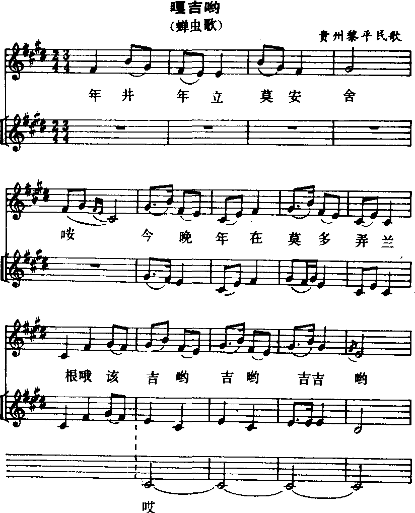 | 释义 | 蝉虫歌侗族大歌。世居贵州、广西和湖南接壤地带的侗族同胞,有一种群众性的多声部民歌,称作“大歌”。其中以贵州东南的黎平、从江和榕江三县为最丰富。依照传统演唱习惯,可分为女声大歌、男声大歌及童声大歌3种类别。这是由歌队组织,以及歌唱活动方式所区别的。大歌具有独特的演唱方式:先由歌队中一人(或二人轮换)领唱高声部,随后众人加入齐唱低声部,两个声部时分时合,以五声羽调的旋律,作同度及大小3度等音程的结合,和谐默契,亲切柔美,悦耳动听。蝉虫歌即蝉歌,在侗语中有“嘎吉哟”、“嘎弄兰”、“嘎令”等名称。“嘎”是歌的意思,而“吉哟”、“弄兰”、“令”,则分别是歌中摹仿蝉鸣的花腔衬词。蝉虫歌属于大歌中“声音歌”的一种,领唱以清脆的歌喉,虚拟蝉鸣之声,十分别致引人。它是侗族同胞歌唱活动中的重要曲目。