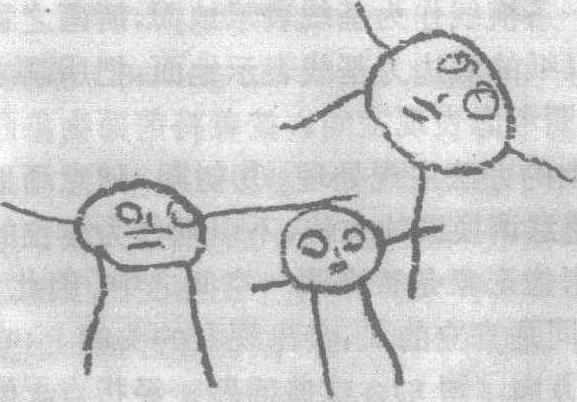 | 释义 | 蝌蚪人Kedouren称儿童在象征期所画的人物形象。由于其形同蝌蚪,故名。瑞士心理学家皮亚杰在《儿童心理学》中说“幼小儿童的初期描绘中最共同的特点是,经历着一个极其有趣的阶段,即‘蝌蚪人’的阶段。它是由一个头部配备着像线一般细的附属物指两只脚,(见‘象征期’辞条‘蝌蚪人’附图);或是一个头部配备着两手和两脚,但并无躯干。”(瑞士J·皮亚杰 B·英海尔德著《儿童心理学》商务印书馆第50页)但“蝌蚪人”这一名词,并非由皮亚杰始,早在本世纪20年代西方关于儿童绘画的著作中已将儿童所画的这种形象称之为“蝌蚪人”。我国心理学家黄翼于30年代在《儿童绘画心理》一书中,亦将其称为“蝌蚪人”。