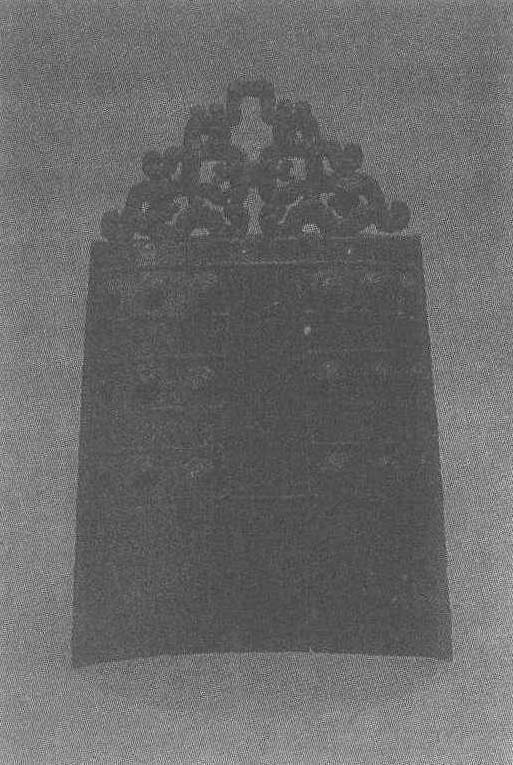 | 释义 | 蟠螭纹有铭铜编镈(共8件)春秋。最大件通高33厘米,最小件通高23.5厘米。1978年河南省固始县侯古堆一号墓陪葬坑出土。河南省文物研究所藏。此编镈系一组乐器,同时出土的还有两件丁字形钟锤。镈钮铸成两组对峙的三兽盘绕的伏兽形,钲部两侧各铸九个枚。舞部与隧部饰蟠螭纹。这组编镈除一件无铭外,其余在钲与鼓部都有相同的铭文。