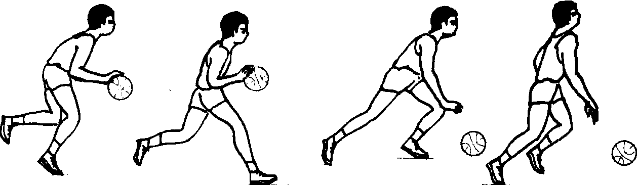 行进间直线运球常用的一种运球方法。练习时,目视前方,上体稍前倾,臂对运球方向,手触球的后上方,在后脚蹬地的同时,前臂、手指、手腕推拍球的后上方,球的落点在身体侧前方,球反弹的高度约在腰、腹之间。老年人练习时,可先做走动中的运球练习,体会按拍球的部位和用力方法;然后再做跑动中的运球练习,速度由慢到快,使跑动的步法与按拍球的节奏协调一致。 |