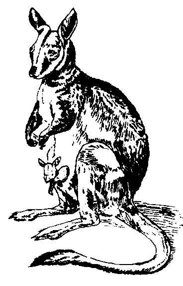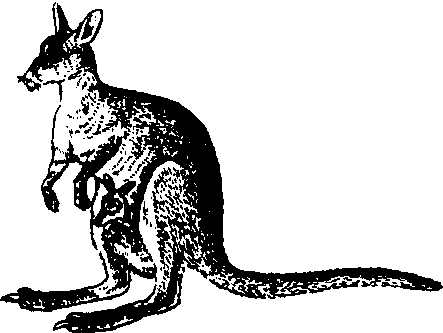 | 释义 | 袋鼠Daishu有袋类袋鼠科动物的统称。主要特征是:胎生,但无真正的胎盘;母兽在身体腹部具有特殊的育儿袋,发育不完全的幼仔生下来后在这种育儿袋中继续完成发育;大脑半球体积小,表面无沟回,也无胼胝体;体温接近于恒温,在33—35℃之间波动;雌性具双子宫和双阴道,雄性的阴茎末端分成两叉,交配时每一分叉进入一个阴道;牙齿为异型齿,门齿数目多。主要分布在澳大利亚,大约有60多种,最著名的代表是大袋鼠(Macropusgiganteus)。体型较大,长达2米以上,头小而尖,耳壳大,听觉很灵敏,稍有动静就可发觉。皮肤较厚,雄袋鼠皮毛呈红褐色,雌性为灰色。前肢短小,仅用于摄食;后肢长而粗壮,主要用于跳跃。前肢具有5趾,后肢具4趾。尾粗而长。袋鼠休息时用尾和后肢支持身体,跳跃时尾可作为平衡器官。一般都是成群生活胎生,胎儿在母体内发育不完全即降生出来,妊娠期约39天,每胎产1仔。初生幼仔体长仅有2. 5—3厘米,体重0.5—0.7克,大小似一个核桃。母兽用嘴将幼仔送入到腹部的育儿袋中发育。在育儿袋中,幼仔用发育相对较好的前肢爬行,去寻找位于其中的乳头,吮吸乳汁。经过7—8个月,幼仔便可以离开育儿袋下地生活,但在遇到危险时仍可钻进母体的育儿袋中。大袋鼠主要栖息在树林、灌丛和草原之中,以树叶和牧草等植物性食物为食。在某些地区,当数量过多时可对农作物产生一定的危害。其皮肤柔软坚韧,可以用来制造皮鞋和手套。在澳大利亚,大袋鼠的形象已被广泛用于各种商标或徽章的图案设计中,连澳大利亚的国徽上都有一只大袋鼠,因此在某种意义上,大袋鼠已成为这个国家的象征。