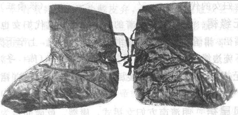 | 释义 | 袜wà足衣,穿在脚上的服饰。制作材质可以用皮革、布帛、丝绸等,见于史籍的还有锦袜、绫袜、纻袜、绒袜、毡袜及毳袜等名目。袜筒有长短,长可及膝,俗谓“袎袜”。短仅数寸;中有一缝,名曰袜梁;下托一底,又名袜船。早期的袜子多以皮革制成,制用高袎,袎口有带,着时以带系结于胫。男女均可服用,可以行走于地,以代鞋履。宋代以后还出现过一种无底之袜,仅用袜统,着时包裹于小腿,上不过膝,下达于踝,俗谓“膝袜”,或称“半袜”。汉刘熙《释名·释衣服》:“袜,末也。在脚末也。”张衡《南都赋》:“修袖缭绕而满庭,罗袜蹑蹀而容与。”唐冯贽《记事珠》:“杨贵妃死之日,马嵬媪得锦袎袜一只。”元刘庭信《戒嫖荡》曲:“身子纤,话儿甜,曲躬躬半弯罗袜尖。”明胡应麟《少室山房笔丛》卷一二:“自昔人以罗袜咏女子,六代相承,唐诗尤众。至杨妃马嵬所遗,足征唐世妇人,皆著袜无疑也。然今妇人缠足,其上亦有半袜罩之。”见423页“袜mò”。 袜mò抹胸,俗称肚兜。《广韵·末韵》:“袜,袜肚。”《集韵·末韵》:“袜,所以束衣也。”《玉台新咏·刘缓〈敬酬刘长使咏名士悦倾城〉》:“钗长逐鬟髻,袜小称腰身。夜夜言娇尽,日日态还新。”《陈书·周迪传》:“迪性质朴,不事威仪,冬则短身布袍,夏则紫纱袜腹,居常徒跣,虽外列兵卫,内有女伎,挼绳破篾,傍若无人。”见294页“袜wà”。 袜与、同。 《说文》: “, 足衣也”。 最早用革或韦(熟皮)制成,后多以绫、罗为原料。上古的袜子要系带子,长沙马王堆一号汉墓出土的两双短统夹绢袜的袜口即附有二带,用以系缚足。登堂入室时,要脱袜以示礼敬,这就是《左氏传》所说的:“古者臣见君解袜,既解袜,则露其邪偪(蔽膝)。”又据《左传·哀公二十五年》载,褚师声子因着袜登席,卫侯认为大不敬,非断其足不可。注云:古者见君解袜。脱袜示敬之风,至唐代渐消失。唐代妇人多着罗袜,唐诗也多以罗袜咏女子。宋以后,妇人多缠足,其上亦有半袜罩之。