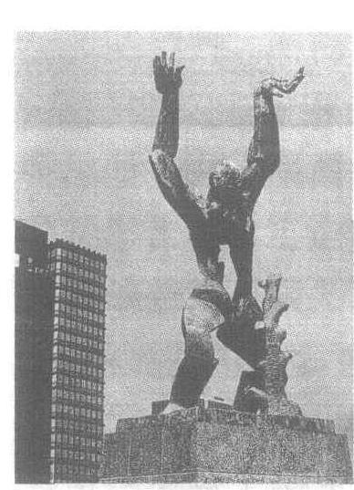 被毁坏的城市 鹿特丹位于莱茵河下游,距北海30公里,是世界第一大港、荷兰第二大城。这里风光秀丽,建筑辐辏,运河纵横,船坞棋布。第二次世界大战期间,鹿特丹遭到严重破坏。1940年5月13日,希特勒德国在一天之内炸毁3万多座建筑物,市中心变成一片废墟。大战末期,德军撤退之前,港口又遭到野蛮性摧毁。有感于法西斯暴行,雕塑家奥西普·扎金怀着强烈的愤怒心情,创作了《被毁坏的城市》,于1953年立于鹿特丹市南一个广场上。这是 一件极具震撼力的作品,雕塑家以极度夸张的表现手法塑造了 一个悲壮的形象——他赤裸的身体已遍体鳞伤,艰难地挣扎着举起巨大的双臂,仰天长啸,是对毁灭城市悲痛欲绝的呼唤,还是对法西斯滔天罪行的控诉!?他似乎叫人们要永远记住1940年5月13日这一天。 奥西普·扎金(1890~1967年)是俄国雕塑家。1905年,前往英格兰首次接受艺术教育。1909年赴巴黎,转年开始参加独立沙龙和秋季沙龙展。1941年扎金逃离德国统治下的巴黎去美国。 战后返回巴黎,执教于“大茅屋学院”。50年代起不断参加现代艺术展,并获殊荣。《被毁坏的城市》在鹿特丹竖立后,博得国际盛赞。其艺术受立体主义、表现主义、超现实主义影响,但自成一格,为同行瞩目。 |