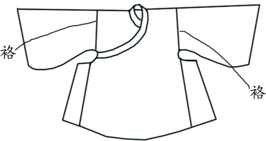 俗称“挂肩”。衣身与衣袖之间拼缝处。也代指衣袖。《礼记·深衣》:“袼之高下,可以运肘。”汉郑玄注:“肘不能不出入,袼,衣袂当掖之缝也。”亦通称衣袖。《广雅·释器》:“袼,袖也。”清王念孙疏证:“袼,衣袂当掖之缝也。盖袂为袖之大名。袼为袖当掖之缝,其通则皆为袖也。”