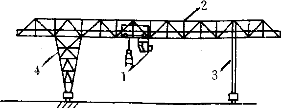 装卸桥 1.起运小车 2.桥架 3.挠腿 4.侧腿 |