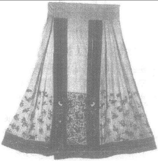 | 释义 | 裙服古代男子也穿裙服,但主要是妇女的服装。战国时出现了襦裙,汉代成为妇女日常服装。襦是一种短衣,长度只到腰间。下身系裙,是用几幅绢帛拼成上窄下宽的一片,用绢条缝作裙腰,两边有系带,裙长多垂至地,下摆呈喇叭状,行不露足,裙腰高到胸部为特点。颜色上,红黄、白较流行,富裕家庭的女子还在裙上绣花。魏晋南朝妇女上身穿襦袄、衣衫崇尚宽博,宽衣博带大袖翩翩; 而北朝受胡服影响,多穿窄袖紧身小袄。此时流行裥裙,一种多幅长裙,由两种或两种以上颜色的纱罗布帛条片拼接而成,裙腰很高,裙身很长。此外还流行羊肠裙,此裙因裙褶卷曲如羊肠状得名。贵族妇女喜欢穿绛纱复裙、绛碧结绫复裙、紫碧纹双裙、白素裙、石榴裙等。唐代裙服质料之贵、色彩之艳、式样之多、装饰之精都大大超过前代。上身的襦袄有夹有絮,衣衫用罗纱制作,衣袖宽至四尺。下身的裙也以制作精巧为尚,安乐公主用百鸟毛制成百鸟裙,色彩极为丰富。裥裙、花笼裙也很流行。这时的裙色以绯、紫、黄、青最为多见。唐代的裙腰很高,直至胸部,并往往“粉胸半掩凝晴雪”。而且裙长可及地,曳地至三五寸,孟浩然有诗云: “坐时衣带萦行草,行即裙据扫落梅。”宋代裙服一改唐代宽博华贵艳丽的风气,襦袄、罗衫讲求质朴清淡,多用淡绿、银灰、粉紫等间色,样式比较紧窄。下裙多用绫、罗、纱、绢制作,颜色以红、绿、黄、蓝、青为常见,而以石榴裙最为流行,罗裙的穿着也较为普遍。上层妇女喜爱用郁金香草染裙,使之阵阵飘香,称作 “淡罗衫子郁金裙”。裙幅有六幅、八幅、十二幅,腰间的褶裥多如 “眉皱”,称作“百迭”、“千褶裙”。明代的裙服特点是上衣渐大,开始只在腰间,嘉靖时垂到膝下,离地仅五寸。裙则短而褶少,只在下边一二寸的地方加上纹绣。裙上讲究纹样,有的腰间细褶数十,行走时如水纹波动。还有一种浅色的画裙,用十幅拼成,腰间每褶用一种颜色,风吹裙动,叫 “月华裙”。清代汉族妇女也服裙服,袄衫多为圆领,用锦、缎、纱罗、绸等制作。裙的式样繁多,不下几十种,有 “百褶裙”、“弹墨裙”、“凤尾裙”、“洋印裙” 等等。