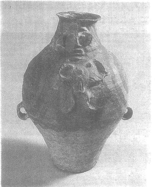 | 释义 | 裸体人形彩陶壶新石器时代马家窑文化马厂类型。高34.4厘米,口径9.3厘米。青海省乐都柳湾出土。北京中国历史博物馆藏。此器侈口、鼓腹、平底,壶耳上方绘两大圆圈纹,并以网纹填充,前后饰蛙纹。此器除绘制马厂类型的典型图案外,还在器腹主要部位堆塑裸体人像,人像是男性是女性还是男女两性的复合体?目前还有争议。其堆塑的用意及表达的内容也待进一步研究,但从美术史上看,这是我国发现较早的人物裸体雕塑作品,无疑对研究我国雕塑发展史具有重要意义。马家窑文化见“束腰彩陶罐”条目。