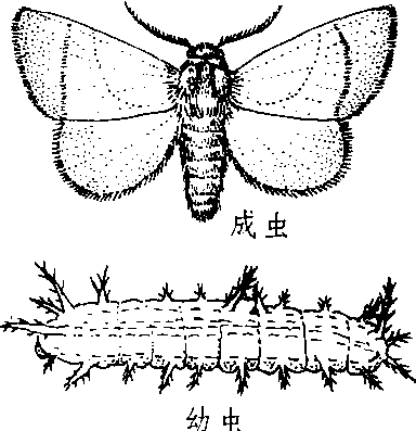 | 释义 | 褐刺蛾brownish slug mothThosea postornata Hampson,又称痒辣子、桑刺蛾。鳞翅目,刺蛾科。分布于江苏、浙江、湖北、湖南、河北、山东、江西、广东、台湾、四川等省。成虫体长15mm,前翅褐色,有两条深褐色弧形纹,二纹间色淡。幼虫长圆筒形,黄色,有红色和黄色纵线,各节均有刺突。虫茧鸟蛋形,淡灰褐色。幼虫食害桑、茶、桃、梅等多种树木叶片,一年发生2代,末龄幼虫入土结茧越冬。防治方法:消灭虫茧;摘除虫叶;幼龄幼虫期洒50%辛硫磷1 500倍或80%敌敌畏1 000倍液。