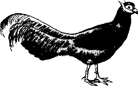 图335 褐马鸡 褐马鸡属鸡形目,雉属。俗称角鸡、黑雉。为中国Ⅰ级保护鸟类。仅见于中国山西北部宁武、岢岚一带及河北西北部小五台山区。全长90~100cm左右,尾长40~60cm,体重约2~3kg。体羽主要为浓褐色。尾羽共22枚,中央2对特别长大,披散似马尾状。褐马鸡栖息于海拔1165~2000m的山地林区。冬季极端低温为-23.5℃,夏季最高温度为33.3℃。冬天常20~30只成群活动,飞行缓慢,善奔走。3月中旬进入繁殖期。此期间雌雄成对活动,雄鸡叫声粗厉而洪亮,远在2km之外隐约可闻。发情期3~5月,交尾时间一般在9∶00~11∶00,17∶00~19∶00。在海拔1830~2500m高度营巢产卵。相邻巢距离180m,垂直高差53m,产卵期为4月上旬和中旬。每年产1窝,每窝产卵4~17枚。卵呈淡褐色,无斑点,平均重量58.8g,大小为59.9mm×43.8mm。孵化时巢温36.5~36.7℃,孵化期约26~27d。雏鸟早成型。 |