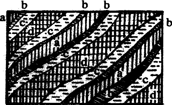 图1 褶曲要素 AB、CD. 翼; 被ABGCD包围的内部岩层. 核;BGC. 转折端; GE. 枢纽; HIEF. 轴面; FE. 轴 褶曲有两种基本形式,即背斜和向斜。向上凸出的褶曲,岩层自轴面向两侧倾斜,或者更确切地说,褶曲的核部为老岩层,两翼为新岩层的褶曲称为背斜;向下凹的褶曲,岩层自两侧向轴面倾斜,或者更确切地说,核部为新岩层,两翼为老岩层的褶曲称为向斜。由于褶曲的形态是多种多样的,例如图2中D、E所表现的形态,只凭上凸、下凹是无法断定哪是背斜和向斜,因此只有根据核部和两翼的新老关系,才能区别开来,所以,在上述背斜和向斜的概念中的后一半表述才是最正确的。按褶曲形态可以分成许多类,从褶曲横剖面形态看,根据轴面产状可以分为直立、倾斜、倒转、平卧和翻卷等5种褶曲(如图2)。根据转折端形状及两翼特点可以分为: 箱形褶曲 (图3)、锯齿状褶曲(图4)、等斜褶曲 (图5)、扇形褶曲 (图6) 等。