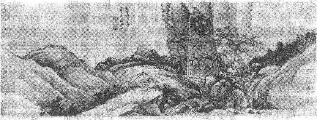 | 释义 | 观梅图卷清代,王翠作。纸本,画心纵28.8,横73.3厘米。浅设色,写峰峦幽深,飞瀑流泉,半山高台处筑一草亭,亭内盘坐一人,倾身仰望溪流边芬芳吐艳的红梅。用笔虽简,但人物的神态竟被捕捉无遗。草亭四周翠竹环绕与远处的密林构成一种清幽的环境。山石多用干笔皴擦,配以浓墨苔点,古朴苍劲,款署“耕烟散人王翚画于天潭邃谷”,钤“耕烟散人时年七十有四”。此图当为康熙四十五年 (1706) 所作。鉴赏章有“乾隆御览之宝”、“宣统鉴赏”等章。原为清内府所藏,现藏旅顺博物馆。