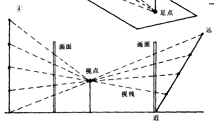 视点发射的直线或连接视点的直线。是假设的直线 (图1❶❹)。