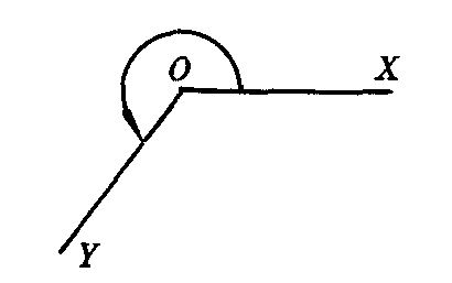 图4 平角 周角的一半,叫做平角.平角的始边与终边互为反向延长线.如图2,∠COD就是一个平角. 直角 平角的一半,叫做直角.记作Rt∠.如图3,∠MON就是一个直角. 锐角 小于直角的正角,叫做锐角.如图3,∠MOP就是一个锐角. 钝角 大于直角而小于平角的角叫做钝角.如图3.∠MOQ就是一个钝角. 劣角 直角、锐角和钝角称为劣角. 优角 大于平角而小于周角的角叫做优角.如图4,∠XOY就是一个优角. |