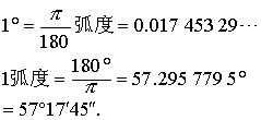 在书写中弧度的符号通常省去不写. 用弧度作量角单位的制度叫做弧度制,又叫做弪制. ❸百分制 取直角的百分之一作单位,叫做.1分为100分,1分又分为100秒.用作量角单位的制度叫做百分制.此制度是法国创立米突制时(1795年)提议的,但未得到推行. ❹密位制 把圆周分成6000等份,每一份叫做1密位的弧,1密位的弧所对的圆心角叫做1密位的角.以密位作量角单位的制度叫做密位制.密位制常在军事上应用.