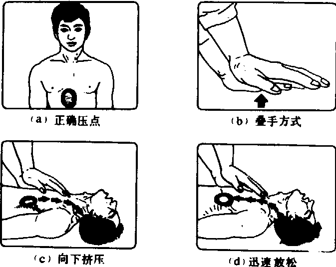 | 释义 | 触电急救first aid of electric shock对触电者实施的救护措施。触电急救的基本要点是: 首先使触者脱离电源,而后就地进行救护。使触电者脱离电源的具体方法视现场情况而定,通常可利用线路上的开关切断电源;借助于绝缘物使触电者脱离电源;用电工钳切断电源线(只适用于电压电路),或人为造成短路,迫使保护装置动作切断电源。触电者脱离电源后,应根据触电程度,及时采取正确的救护方法进行救护,具体要求是: 若触电者呼吸未停、心脏仍跳动,应使之在空气通畅场所平卧放松,安静休息,仔细观察。若触电者呼吸停止、心跳尚存,应对其实施人工呼吸,呼吸速率为每分钟12次左右,人工呼吸的正确做法如图1所示。若触电者呼吸尚存、心跳停止,应对之实施胸外心脏挤压,挤压速率为每分钟60次左右,胸外挤压的正确做法如图2所示。若触电者呼吸、心跳均已停止,应对其同时实施人工呼吸及心脏挤压。救护应坚持不懈,直至完全恢复呼吸及心跳为止,中间不容间断。