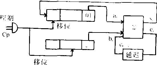此加法器的设计思想与我们通常加法运算习惯相同, 即由低位到高位,按位加,每位产生的进位与下一位两个数字相加。图中的A、B表示寄存器,两个移位箭头由最低位起同步地逐位前移。ai、bi分别表示A、B中第i位的数字,ai、bi与前一位加法产生的进位ci-1同时进入全加器∑,相加的结果在本位(第i位)上为si,存入寄存器A的第i位,产生的进位ci经过延迟等待与ai+1、bi+1相加。此时移位指针同步地前移一位, 这种加法器的特点是各位运算在时间上错开,只需要一个全加器,因而被称为串行加法器。与此对应,有各位加法同时进行的并行加法器,它所需要的全加器数目与相加的二进制数的位数相同。两者相比,前者的优点是结构简单且节省元件,而后者的运算速度则要快得多。