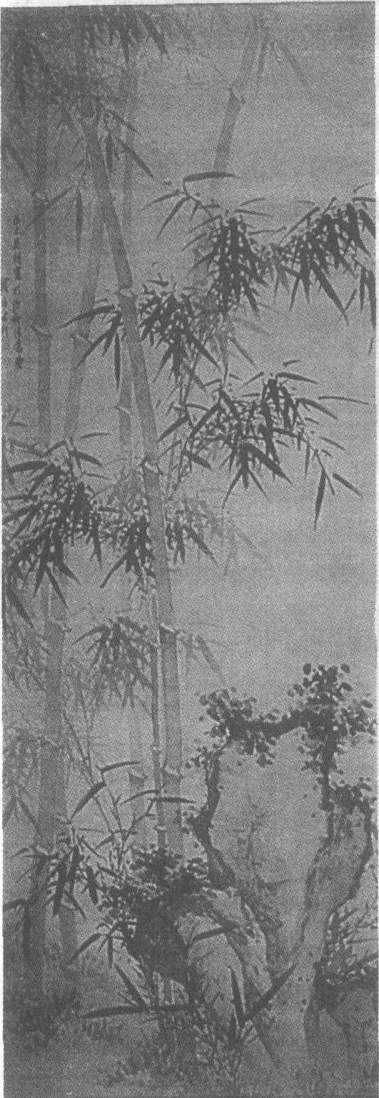 | 释义 | 诸升墨竹图轴清。诸升绘。绢本水墨。纵195厘米,横69.7厘米。山东省泰州市博物馆藏。诸升(公元1617—?年),字日如,号曦庵,仁和(今浙江杭州)人。善画兰竹石,亦长于山水。下笔劲利,出笔潇洒不凡,所绘翠竹发竿劲挺秀拔,横斜曲直,不失法度,其中雪竹尤为驰名。图中绘墨竹五枝,取其自然生长之态,旁逸斜出,互相交错,以淡墨写竹竿,竹叶则浓淡相间,墨色层次分明,表现出叶子的阴阳向背。作者笔墨老劲,技巧纯熟,竹姿潇洒婉约,清丽而生动,具有晨风薄雾中飘举摇曳之感。竹丛下苔藓小草密布,富有生气。画面右侧绘一巨石,石下小竹丛生,秀健活泼,既平衡了画面,又丰富了内容,意境秀逸清幽。款题:“己未花朝写于深柳读书堂,钱塘诸升。”