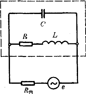 间关系的曲线(当R、L、C不变时)与串联谐振电路中I与ω之间关系的曲线形状相似,从而可以得出发生并联谐振时电路的阻抗最大。设电源提供的电流为I0,不难证明谐振时分支电流IL=Ic=QI0。并联谐振时分支电流的大小近似相等,位相差近似为π。Q值一般很大,所以分支电流都很大。虽然并联谐振时总电流I0很小,但分支电路中有很大的电流,由电能变磁能,磁能变电能,互相交换能量。外电源只提供很少能量补充电路的损耗。其三、选择性——给电路接一有内阻R内的电源(如图3所示),当电源电动势的频率变化而电源电动势的有效值ε不变时,则谐振电路的端压U随频率变化。设R内≫z(z为并联谐振电路阻抗)时,则I0=ε/R内,U=I0z。当电源频率变化时,I0近似不变,所以U随z变(因z与频率有关)。z=z0时,I0z0有最大值(I0z0是谐振时的电压)。从电压角度看,谐振电路对频率有选择性。当有几个频率不同而ε相同的电源串联起来给并联谐振电路供电,电路两端电压将出现几个频率不同的成分,其中频率与电路频率f0并相同的成分最大。在电子线路中常利用此法从多频率的讯号中选出所需要的频率成分。可以证明为了提高并联谐振的选择性应使用高内阻电源。