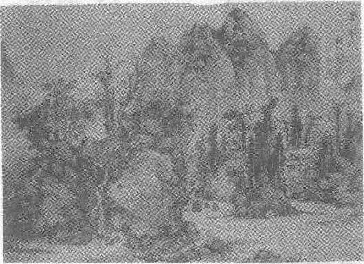| 释义 | 谢时臣溪山秋晚图轴明。谢时臣(见《谢时臣虎阜春晴图轴》条目)绘。纸本水墨。纵55厘米,横72.5厘米。山东省博物馆藏。此图绘溪山秋天的景色及隐居情趣。远处山峦重叠,山势险峻雄伟。远山淡抹,颇有层次。山谷幽美,烟雾弥漫。山前,一泓清泉从山间流淌下来,汇成溪水,似潺潺有声。树木掩映下,有几间茅屋草舍。近景板桥上,有两人正在交谈。有的树叶开始凋谢,但仍然苍郁而不显萧条冷落,给人一幅肃穆深远的感觉。构图巧妙新颖,笔法粗壮浑厚。树石皆蓊郁有致。动中有静,静中有动,动静结合,恰到好处。右上自题:“溪山秋晚。樗仙。”