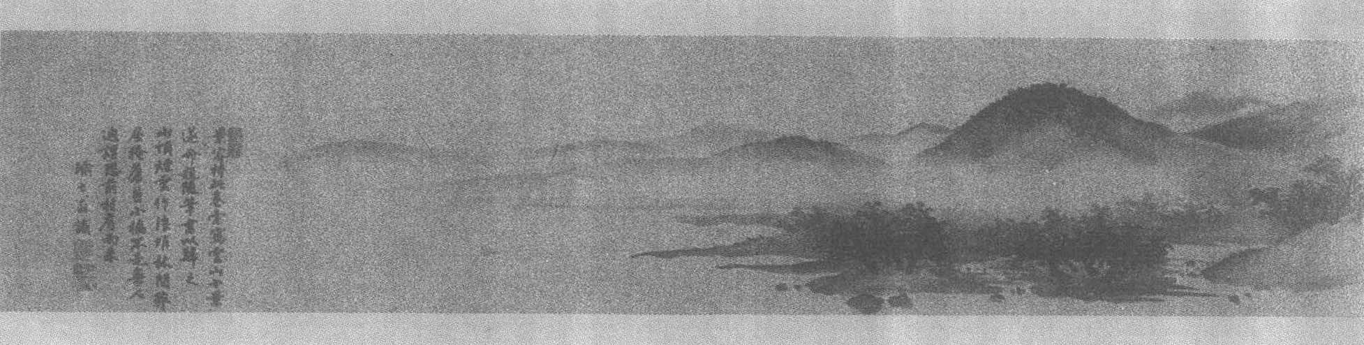 | 释义 | 谢环云山小景图页明。谢环(见《谢环杏园雅集图卷》条目)绘。纸本墨笔。纵28.2厘米,横134.4厘米。1982年出土于江苏淮安明代王镇墓,江苏省淮安市博物馆藏。王镇是明代中期江淮一带著名的收藏家,他的墓中发现有明初著名画院画家的多幅作品,且画风与传世者多有不同。此图即其中的一件,为仿米风格的山水小幅,清幽润淡,简放疏散,亦与作者国内唯一的传世之作《杏园雅集图卷》迥然异趣。图中山峦起伏,圆浑绵展,云烟漫漫,山影朦胧。峰顶树色迷茫,岭下林木丰茂。几架屋檩隐约显现。溪泉蜿转出山,汇入江中,江水浩荡,不见际涯。图中自识:“景容持此卷素写云山小景,遂命题随笔书以归之。山顶烟云作浪推,林间茆屋掩苍苔,小桥不是无人过,谓恐前村有雨来。逾七翁识。”钤<素心白发>白文方印。