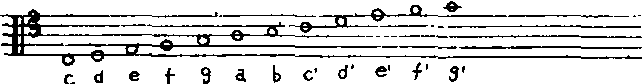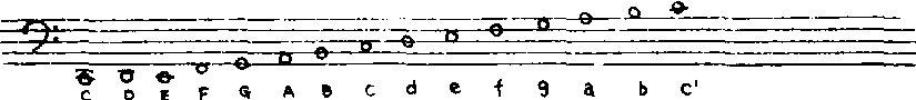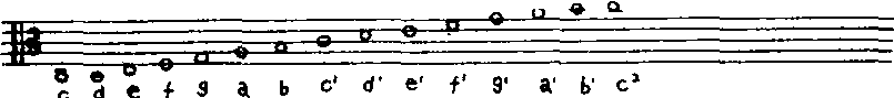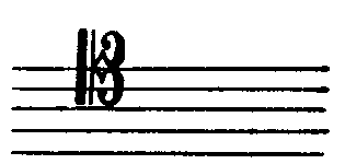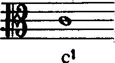 (较少见) ❸中音谱号。又称C谱号。是字母C的变形,可记在五线谱的任何一条线上,表示该线上为c1音。记于