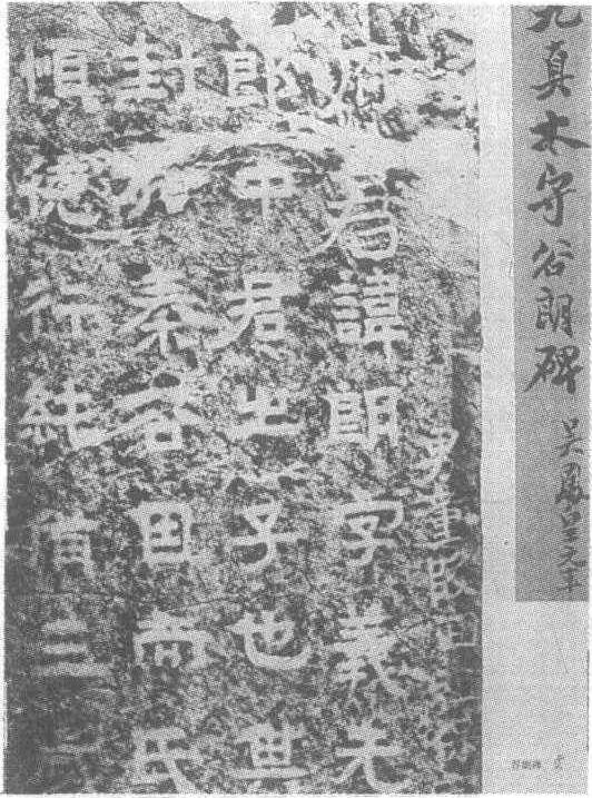 | 释义 | 谷朗碑三国·吴。凤凰元年(公元272年)立。高176厘米,宽72厘米。原在湖南省耒阳县城东谷府君祠内,清时迁至杜甫祠(现耒阳一中)内保存。现在蔡侯祠内。碑额为隶书“吴故九真太守谷府君之碑”11字。碑文18行,满行24字,字径约3.5厘米,记叙谷朗名号的来源和他的身世、品行等。字体介于隶、楷之间,结体古拙,书法端劲有致,开辟了楷书先河,为重要的古碑刻之一。谷朗(东汉建安二十三年—三国·吴凤凰元年,即公元218—272年),字义先,耒阳人,曾官至忠都尉尚书郎,吴建衡三年(公元271年)迁为九真(今越南河内以南顺化以北)太守。有关谷朗碑的记载可参考清代陆增祥的《八琼室金石补正》、叶奕苞的《金石录补》及翁方纲的《两汉金石记》等。