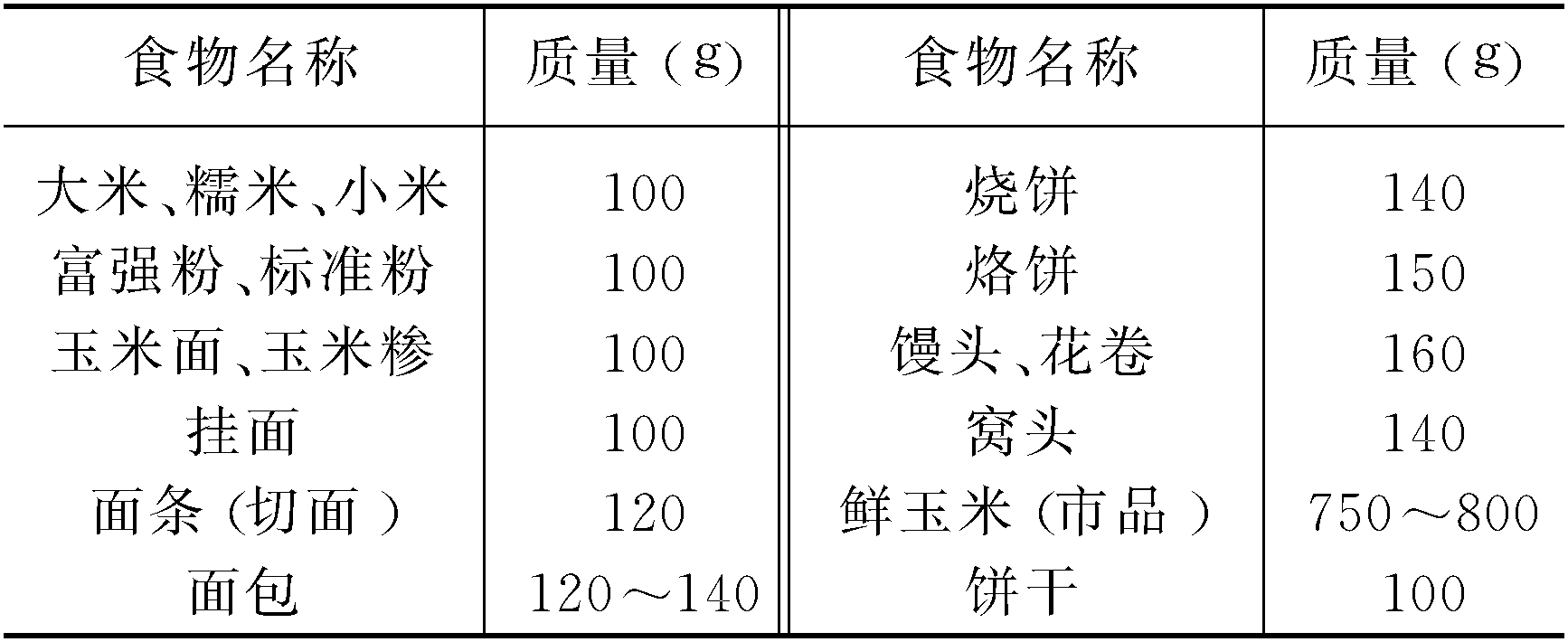 谷类食物互换表(相当于100g米、面的谷类食物)