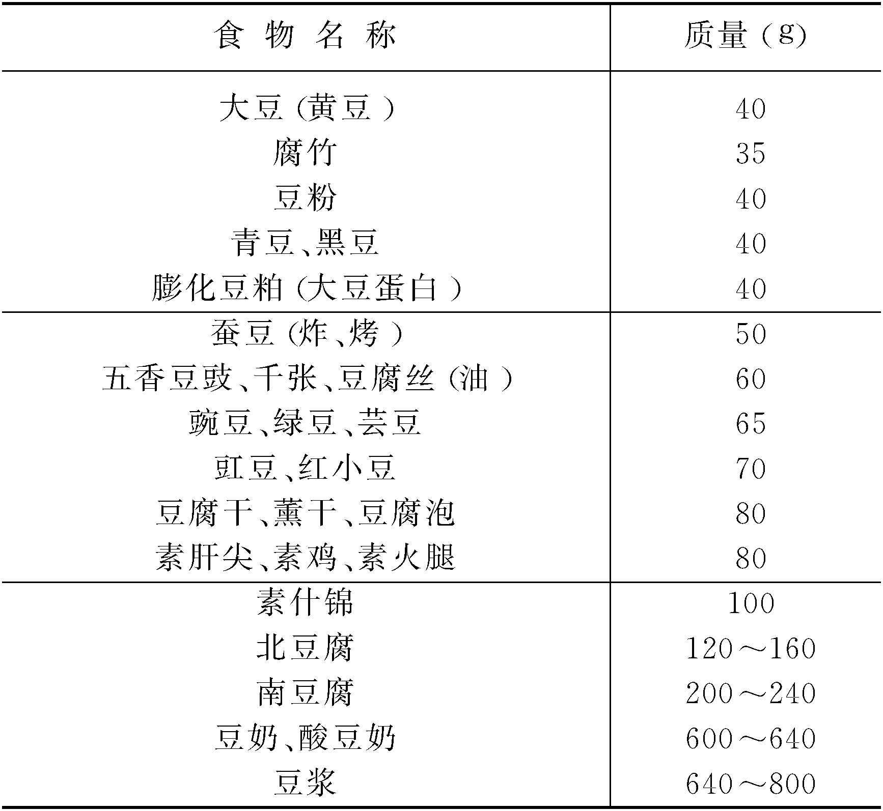 豆类食物互换表(相当于40 g大豆的豆类食物)