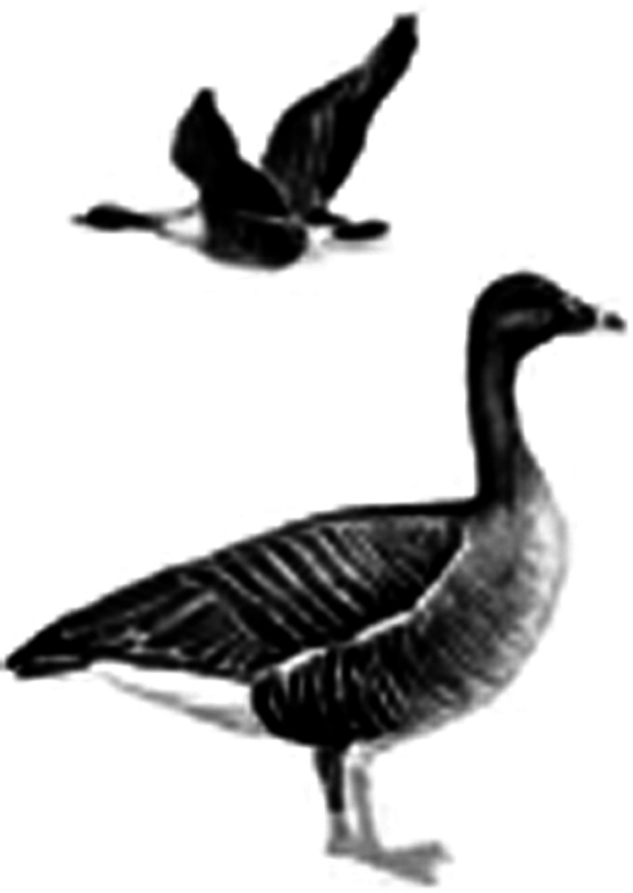 豆雁雁形目鸭科。体型大而肥胖,体重2.6—3.4千克,体长640—750毫米。头、颈棕褐色;肩、背灰褐色;羽缘黄白色,腰黑褐色。两肋具黑褐色横斑。嘴圆形,尖端黑色。分布于天山南北的河流、湖泊等水域。飞翔时呈“一”或“人”字形。食物多以农作物及草类为主。 |