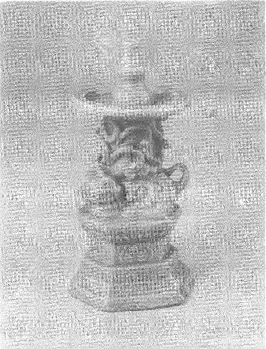 | 释义 | 豆青釉雕狮瓷烛台明正统九年。通高23厘米,底径11.5厘米。1966年江西省永修县明吏部尚书魏源墓出土。江西省博物馆藏。此器胎坚质细,通体施豆青色釉,莹润如玉。全器由插烛管、台柱和台座三部分组成。插烛管为一托盘所承的葫芦形。盘内刻暗花缠枝花草,堆塑缠枝蔓草。柱座雕塑一狮,狮子趴伏在一六边形器座上,神态威严。器座呈多级状,并刻有云纹和回纹。此件器物做工精良,造型独特,是正统时期的瓷器珍品。